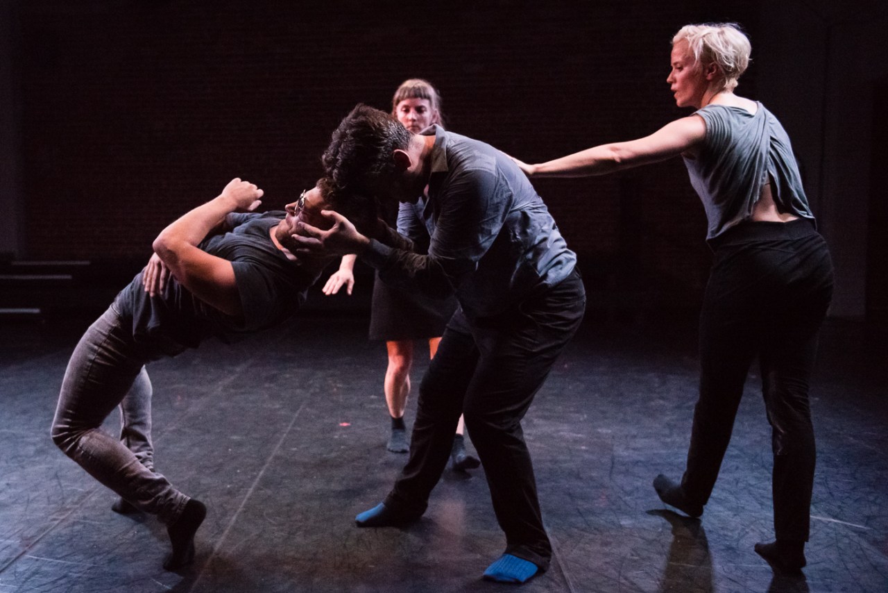 These dancers co-ordinate in a way that bespeaks rigorous rehearsal. An opening solo by Standeven is supported and watched by the other four participants, just as it might be in a ballet. At times, they all move as one unit, striding across the space like creatures on a ship rolling at sea. Sometimes they fall as if victims of a shipwreck.
